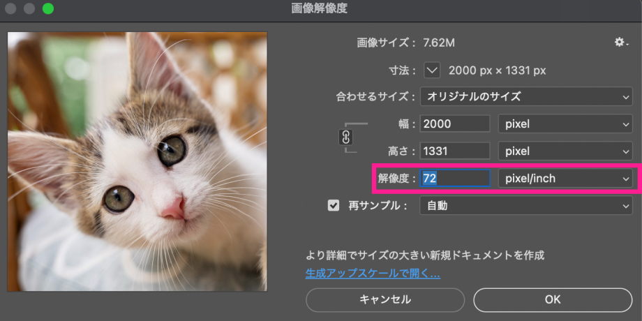 注意点として、「72ppi」という数値は一般的というだけで、絶対ではないことは頭の片隅に置いておいてください。