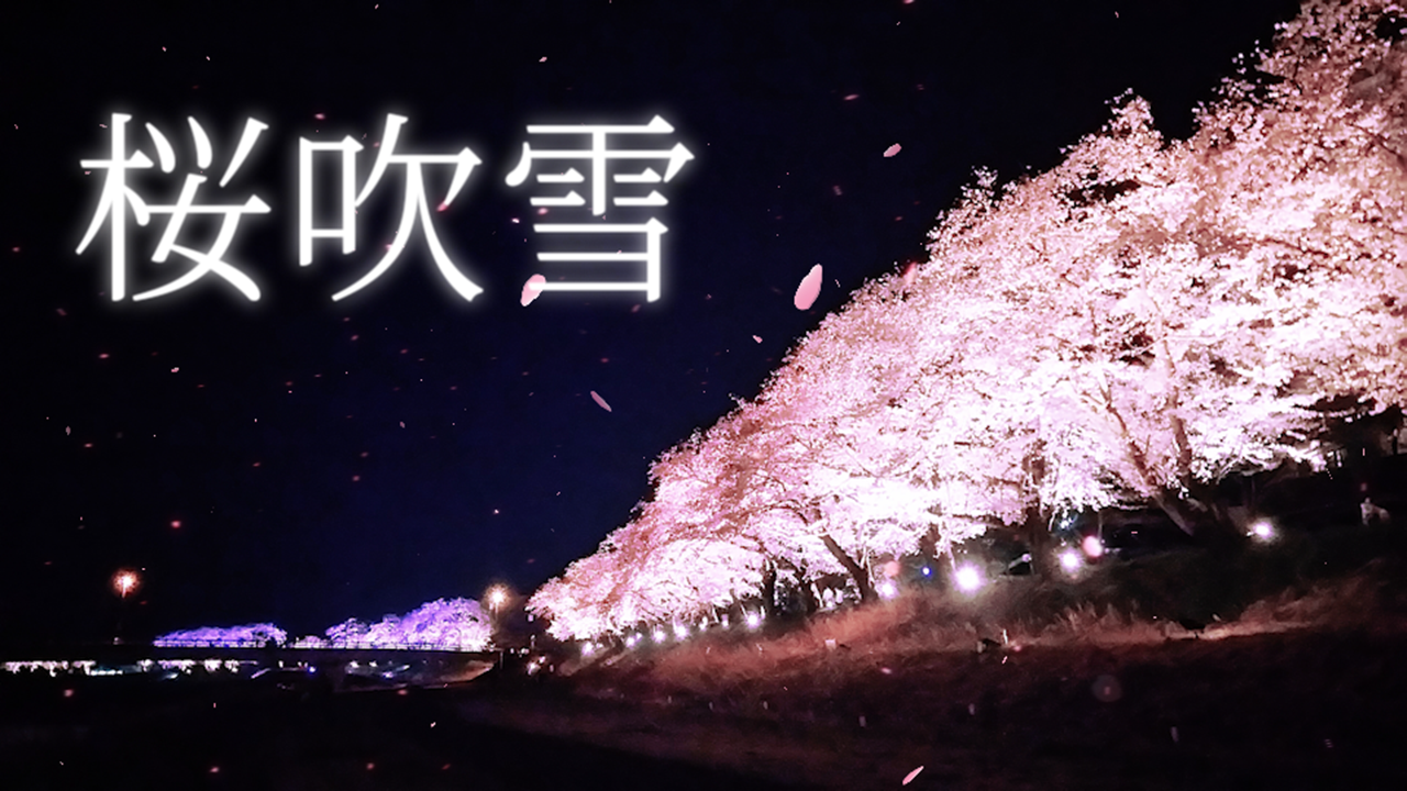 今回は夜桜の画像にアニメーションを合成し、「桜吹雪」というテキストも追加してみました。これで桜吹雪のアニメーションは完成です!