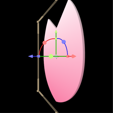 「これで花びら完成!」と言いたいところですが実はこれではまだ不十分です。今回は花びらを立体的に回転させながら舞わせるので、よりリアルな花びら感を出すためにはこの花びらに厚みを持たせることが必要です。