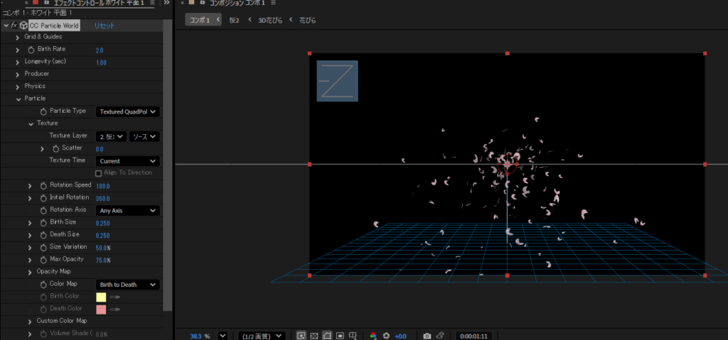 CC Particle Worldで花びらを散らす